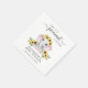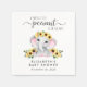 Cuestas servilletas para la ducha de una bebé con "Un dulce cacahuete está en camino" escritas en una mezcla de tipografía gris suave y un guión elegante, y una acuarela rosa pastel de un elefante bebé adornada con girasoles. Personalice el nombre y la fecha de ducha de la futura madre en una simple tipografía gris.