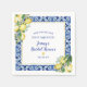 Diseñado para coordinar con la colección Lemon de Jenny, esta servilleta de despedida de soltera presenta ramos de limón amarillos que decoran un azulejo azul cuadrado y un marco dorado. Ella Encontró Su Pareja comienza el texto de la despedida de soltera. El nombre de la novia y la despedida de soltera siguen escritos en una fuente de letra moderna y trendy. La fecha completa el texto. Todo el texto es editable.