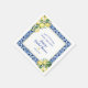 Diseñado para coordinar con la Colección de Limón de Jenny, esta servilleta de despedida de soltera presenta ramos de limón amarillos que decoran un azulejo azul cuadrado y un marco dorado. Ella Encontró su Gran Amor comienza el texto de la despedida de soltera. El nombre de la novia y la despedida de soltera siguen escritos en una fuente de letra moderna y trendy. La fecha completa el texto. Todo el texto es editable.