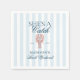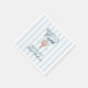 Este diseño de servilleta elegante presenta una ilustración vintage inspirada en un langosta roja sobre un fondo a rayas azul suave.
