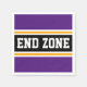 Este diseño deportivo, de fútbol, presenta texto en negrita de la ZONA FINAL dentro de una franja negra de centro ancha realzada con pinstripes blancas y amarillas contra las franjas exteriores púrpura reales. El texto se puede personalizar.