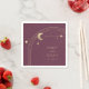 Mystical Plum Gold Sun Star Moon Astronomy Space Bodas Napkins presenta sol, luna y estrellas con un marco dorado sobre un fondo de ciruela. Personalice con sus nombres y fecha o texto personalizado en el centro. Diseñado para usted por © Evco Studio. Parte de una colección en www.zazzle.com/store/evcostudio