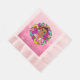 Dulce niña pequeña con la mano dibujada con piel más oscura para representar diferentes razas como el birracial, el hispano o el afroamericano. flores de colores vivos bonito con un fondo rosado para la ducha de bebé de tu chica.