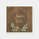 Estas servilletas modernas y elegantes presentan una corona de hojas de eucalipto verde acuarela y un marco geométrico dorado falso sobre un fondo marrón que imita la madera. Puede cambiar fácilmente el texto, lo que hace que esto sea perfecto para una fiesta de bebé o una ducha de novia.