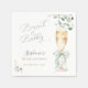 Celebrate the bride-to-be with these elegant "Brunch & Bubbly" paper napkins, perfect for a sophisticated bridal shower. Featuring a delicate watercolor illustration of a champagne flute adorned with a soft sage green bow, surrounded by lush eucalyptus greenery.