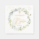 Baptismo para bebés/servilletas de papel para cristianos. Este diseño presenta un ilustracion de hojas de follaje verde y eucalipto al estilo de las acuarelas. Encima de las hojas - confetti adorna la parte superior de las servilletas (sus imágenes pueden ser eliminadas). En la parte superior de la corona hay una imagen de una cruz.