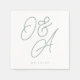Un hermoso diseño de servilleta boda basado en tipografía con sus iniciales en letras de guion verde eucalipto sobredimensionadas con su fecha boda debajo de letras clásicas de serif.