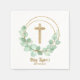 Una cruz purpurina de imitación dorada y hojas de eucalipto resaltan estas servilletas con su personalización en letras de moda. Perfecto para el bautismo, el bautismo o la primera comunión de su hijo. ARTÍCULOS DE COINCIDENCIA disponibles en nuestra tienda.