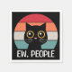 Diseño de estilo retro divertido y colorido con un bonito gato negro y decoración de fondo a rayas de colores y diseño de texto "Ew, People"