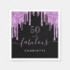 Una servilleta de 50 años (o de cualquier edad) de moda y glamurosa. Un fondo negro clásico decorado con tonalidades purpurinas de color violeta gotea, pintura goteando. Con el texto: 50 y fabuloso. Personalice y agregue un nombre. Texto morado claro. La palabra Fabulous está escrita con un guión moderno de estilo con letras a mano con chispas.