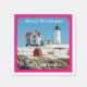 Nubble Merry Christmas Lighthouse Napkins. Aplaude las celebraciones de tus Navidades Náuticos con esta nevada imagen de Nubble Light bordeada en Hot Pink. Personalizar el saludo, si lo desea, así como el nombre.