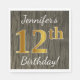 Servilleta De Papel Faux Wood, Faux Gold 12th Birthday + Custom Name