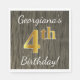 Servilleta De Papel Faux Wood, Faux Gold 4Cumpleaños + Custom Name