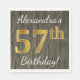 Servilleta De Papel Faux Wood, Faux Gold 57th Birthday + Custom Name