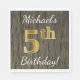 Servilleta De Papel Faux Wood, Faux Gold 5Cumpleaños + Custom Name