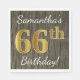 Servilleta De Papel Faux Wood, Faux Gold 66th Birthday + Custom Name