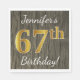 Servilleta De Papel Faux Wood, Faux Gold 67th Birthday + Custom Name