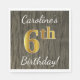Servilleta De Papel Faux Wood, Faux Gold 6Cumpleaños + Custom Name