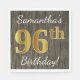 Servilleta De Papel Faux Wood, Faux Gold 96th Birthday + Custom Name