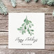 Estas servilletas festivas están decoradas con mistletos de color verde agua y dicen Felices Fiestas en una tipografía elegante. Personalizable fácil. Acuarela original © Michele Davies.
