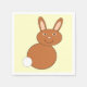 Este impresionante conjunto de servilletas de papel presenta una adorable imagen de un conejito feliz de Pascua creado con arte vectorial. El conejo es marrón con una cola blanca. Tiene una gran sonrisa en la cara como debería hacer un conejo de Pascua.