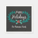 Felices fiestas | Luminosas y coloridas calabazas de Navidades de temporada de tipografía de papel de vacaciones con tipografía retro escrita a mano casual, corona floral con laurel y holly en negro, blanco, rojo y verde. Personalízalo con tu nombre o saludo de personalizado. Haga clic en Personalizar para cambiar el color de fondo o el estilo de fuente. El diseño familiar es ideal para los niños y los adultos jóvenes. Haga que su mesa de fiestas de vacaciones sea festiva y divertida para la familia, amigos, vecinos, clientes de negocios o compañeros de trabajo. Agradable, alegre y caprichoso, deliciosa forma moderna y elegante de expresar antiguos y cálidos deseos de feliz celebración de las vacaciones de invierno con un moderno encanto rústico.