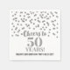 servilletas de personalizable para la fiesta de cumpleaños número 50 con confeti purpurina de plata.