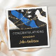 ¡Enhorabuena! Añada el toque final a su fiesta de promoción policial con estas servilletas de felicitación de la policía de la delgada línea azul y suministros de fiesta. Diseño de la bandera estadounidense en colores con bandera de la policía, negro y azul con diseño de luces de cuerda dorada. Las servilletas de promoción de los oficiales de policía también son perfectas para servilletas de retiro de la policía, graduación de la policía y fiesta de graduación de la academia de policía. Vea nuestra delgada colección de líneas azules para igualar invitaciones a la jubilación de la policía, regalos de la policía, favores del partido y suministros. DERECHOS RESERVADOS © 2020 Judy Burrows, Black Dog Art - Todos los derechos reservados. Fiesta de promoción de oficial de policía felicita a las servilletas