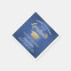 Añada un toque elegante y personalizado a la decoración de la fiesta de graduación de la universidad o la escuela secundaria con estas servilletas de papel azul, dorado y blanco. Todo el texto es sencillo para el personalizar. El diseño presenta un fondo real de acero inoxidable color azul falso cepillado, una tapa falsa de la placa de mortero de Relieve metalizado, una tipografía moderna y elegante y caligrafía de escritura a mano. Tenga en cuenta que el oro es color impreso, no Relieve metalizado metálico. ¡Felicitaciones al graduado!