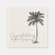 Servilletas de papel con arte de línea minimalista con las palabras "Felicitaciones por su compromiso". Dibujo simple moderno de palmera para suministros de fiesta de compromiso de boda en la playa para celebrar a la pareja afortunada.