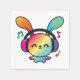 Servilleta De Papel Feliz Conejo con auriculares escuchando música.