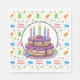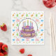 Un Papel De Cumpleaños Colorido Y Festivo Napkin Con Pastel En El Centro Y Corazón De Cerezo En La Parte Superior