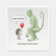 El duende verde recibe un globo rojo de la niña por su cumpleaños.