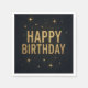 Servilleta De Papel Feliz Cumpleaños Elegante Negro y Dorado Brillante