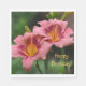 Estas servilletas de cumpleaños incluyen lirios de día rosados bonito.