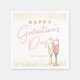 Felices servilletas del Día de Galentine para El día de San Valentín. Con flautas de champán, corazón y purpurina de oro.