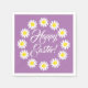 Feliz Pascua lavanda flores de margarita amarillas y blancas bordean el guión personalizado personalizado texto alegre lindo fiesta de las servilletas de papel. Elegante personalizable de texto de guión blanco, fondo de lavanda.