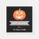 Las elegantes toallas de fiesta de papel "Happy Halloween" personalizado presentan una sonriente calabaza de lámparas jack-o-lantern, texto personalizado que puedes personalizar para tus vacaciones / fiesta con un nombre familiar, y colores clásicos naranja, negro, gris y blanco.