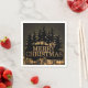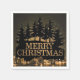 Una foto de una silueta negra de un bosque de abetos con pequeñas luces mirando por aquí y por allá sobre los árboles. Delante del bosque hay una inscripción en letras doradas que dice "Feliz Navidad". El fondo es oscuro.
