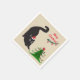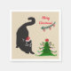Navidades servilletas de vacaciones con gato negro, árbol de vacaciones, flor de Poinsettia . Añadir texto personalizado y color de fondo.