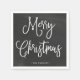 Estas servilletas de papel vacacional simples y modernas dicen "Feliz Navidad" en un escritura rústica y blanca escrita a mano con un fondo negro de pizarra.