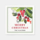 La servilleta de cócteles pegatina Holiday cuenta con un hermoso diseño de acuarela follaje para Navidades con hojas verdes y bayas rojas. Personalizado Feliz Navidad con texto monograma puede ser personalizado.