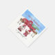 "Feliz Navidad Snowing Gnome Red Truck Tree Farm Napkins". ¡Cielos azules y nieve! Una adorable granja de árboles de la familia Gnome con renos. El texto de la tipografía dice: "¡Feliz Navidad, gnomos!" Arte pintado en acuarela por Audrey Jeanne Roberts, artista y diseñadora con licencia internacional, copyright.