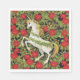 Pintura de Navidades Unicornio con flores de poinsettia roja, ramas huecas y hojas verdes sobre un fondo oscuro.