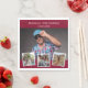Crea tu propio collage de fotos único. Usa cuatro, cuatro de tus fotos favoritas. Personalice y agregue un nombre, edad, fecha. Un fondo borgoñoso. Texto blanco.