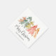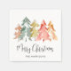 Elegantes servilletas para sus Navidades decoración de mesa de vacaciones con una acuarela abstracta de pinos en verde sabio mudo, rojo, oro y terracota, "Feliz Navidad" en un guión elegante y tu nombre en una simple tipografía moderna.