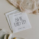 Esta moderna fete minimalista que hizo es perfecta para una simple fiesta de graduación. El diseño presenta una elegante tipografía boho con un toque sofisticado en blanco y negro minimalista. Personaliza tus servilletas de graduación con el nombre del graduado, y el año.