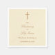 Las toallas de Fiesta cream beige Christening, por favor, personaliza el nombre y la fecha de tus necesidades junto con cualquier otro texto que quieras personalizar, antes de pedir algunas de estas toallas de bonito. Las servilletas presentan la cruz y el elegante y elegante texto en un tono dorado de beige sobre un bonito color crema.