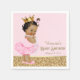 Servilletas para fiesta de bebé rosadas y doradas con adorable princesa étnica afroamericana bailarina con tutú rosa, collar de perlas y corona dorada en un bonito fondo rosa y dorado. Agrega tu texto para personalizar esta adorable servilleta de princesa bailarina rosa y dorada para la fiesta de bebé. También puedes cambiar el color del fondo.