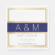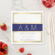 Tus propias iniciales con una franja de oro azul y falsa, y nombres con un estilo de letra delgado... con texto personalizado ‘Gracias por celebrar con nosotros'... para una agradable fiesta de bodas.
